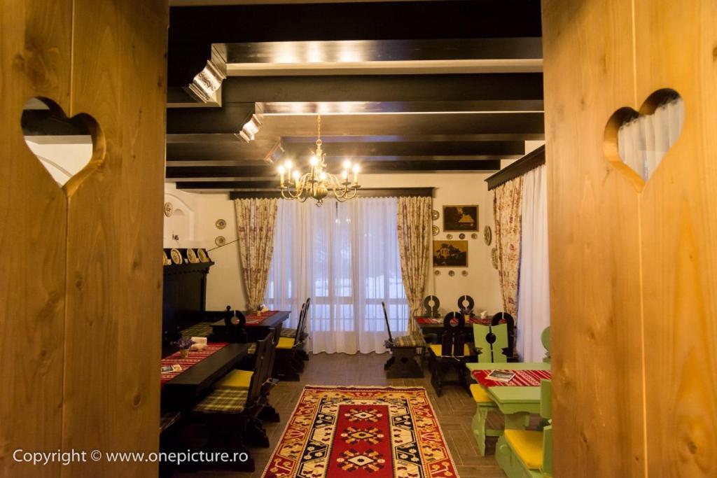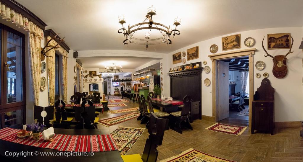 Restaurantul, amenajat in acelasi stil rustic, va va delecta cu preparate culinare traditional romanesti si internationale si are o capacitate de 120 de locuri. La demisol se regaseste si o crama cu o capacitate de 16 locuri, sala de biliard, darts, foosball, ping-pong, remmy si table.