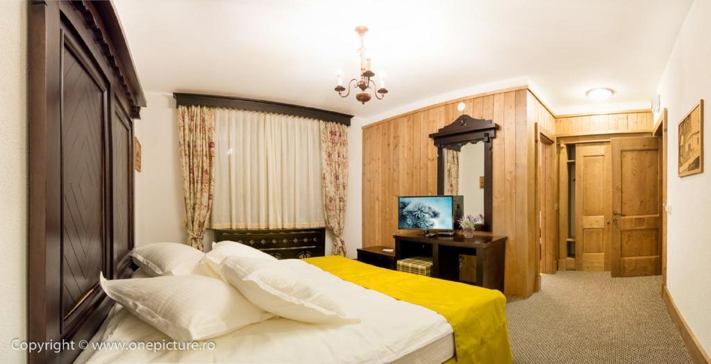 Pensiunea vine in intampinarea turistilor sai cu 14 camere repartizate in 7 duble matrimoniale, 2 camere triple, 2 cvadruple si 3 suite. Toate camerele sunt spatioase, luminoase, placut colorate,cu covorase taranesti, mobilate in stil rustic si dotate cu facilitati precum : grup sanitar propriu, televizor cu ecran plat, incalzire, internet si televizor.