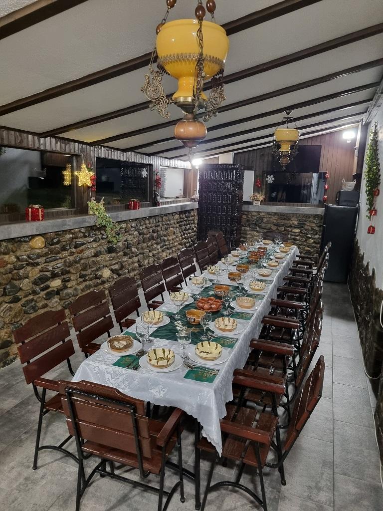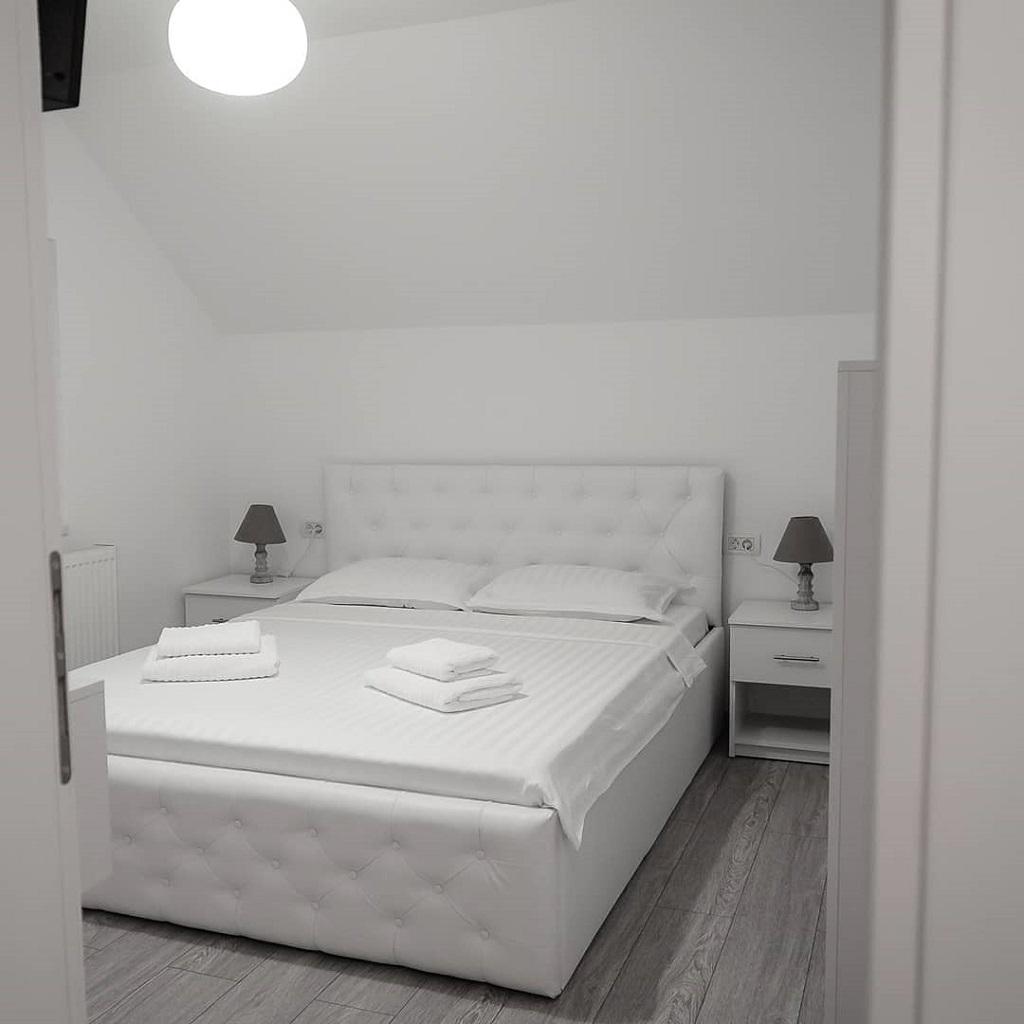 Locația dispune de camere matrimoniale cu baie proprie, aer condiționat, TV smart , frigider, bar , terasa , foișor., bucătărie.
