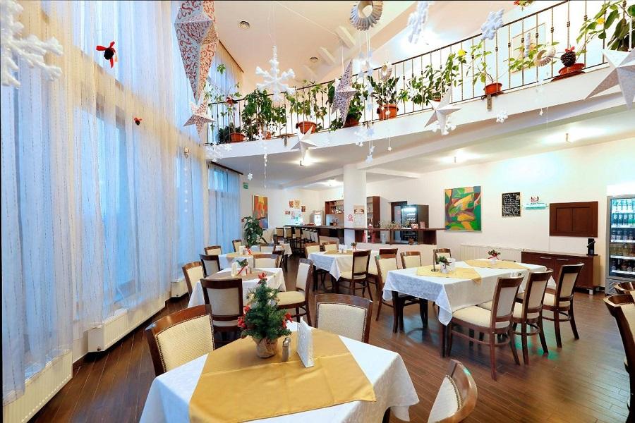 Micul dejun tip bufet continetal este servit zilnic intre orele 08:00 si 10:00 in sala de mese de la parter