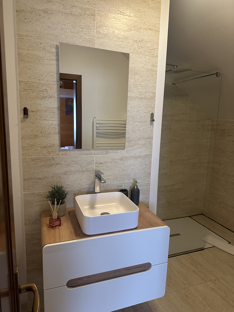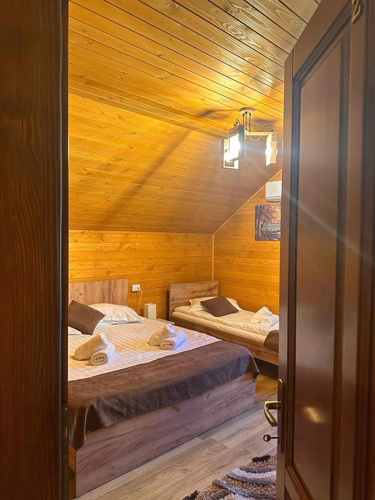 Cabana dispune de 2 camere triple și 2 camere duble, fiecare cu baie proprie, bucătărie complet utilată cu living open-space, baie de serviciu la parter și terasă închisă, perfectă pentru momente de relaxare în orice sezon. Zona de grătar și ciubărul completează experiența, oferind clipe de răsfăț și voie bună.