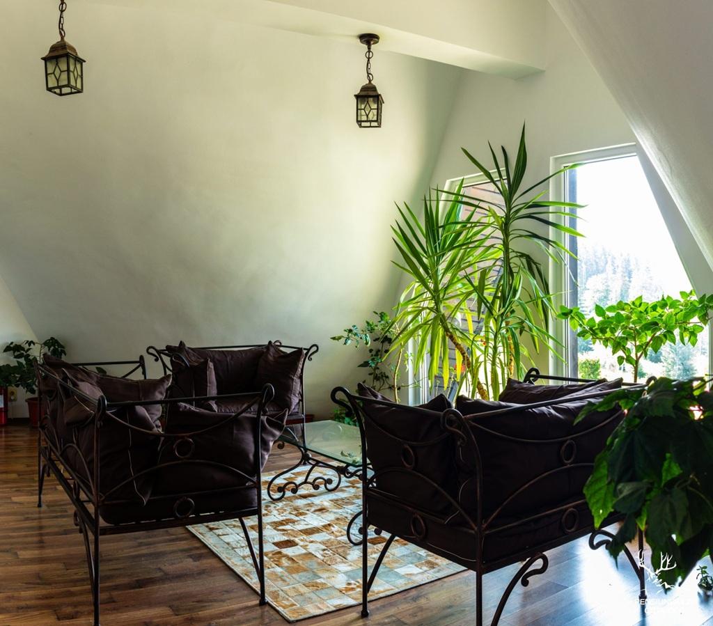 Toate camerele pensiunii sunt dotate cu grupuri sanitare, TV, mobilier rustic din fier masiv, saltele ortopedice, ferestre termopan.