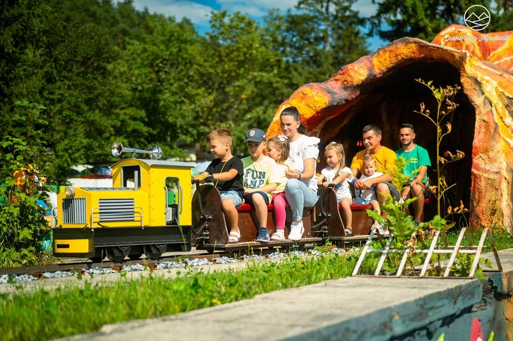 Vizitatorii parcului pot pătrunde cu Trenulețul Piticilor pe tărâmul distracției și aventurii, traversând peșteri și trecând pe lângă o mică cascadă. Trenulețul oprește în zona activităților distractive, unde copiii cu vârste cuprinse între 7-12 ani se vor putea aventura în bile pe apă, trambuline, tobogane gonflabile, carusel, leagăne etc. Pentru cei aventuroși, am amenajat o secțiune specială unde își pot exersa abilitățile de tras cu arcul sau cu pușca, atent supravegheați de animatori. De altfel, au ocazia de a descoperi opțional și Parcul de Aventură cu trasee suspendate între copaci și tiroliană, din cadrul Complexului Dumbrava Minunată.
