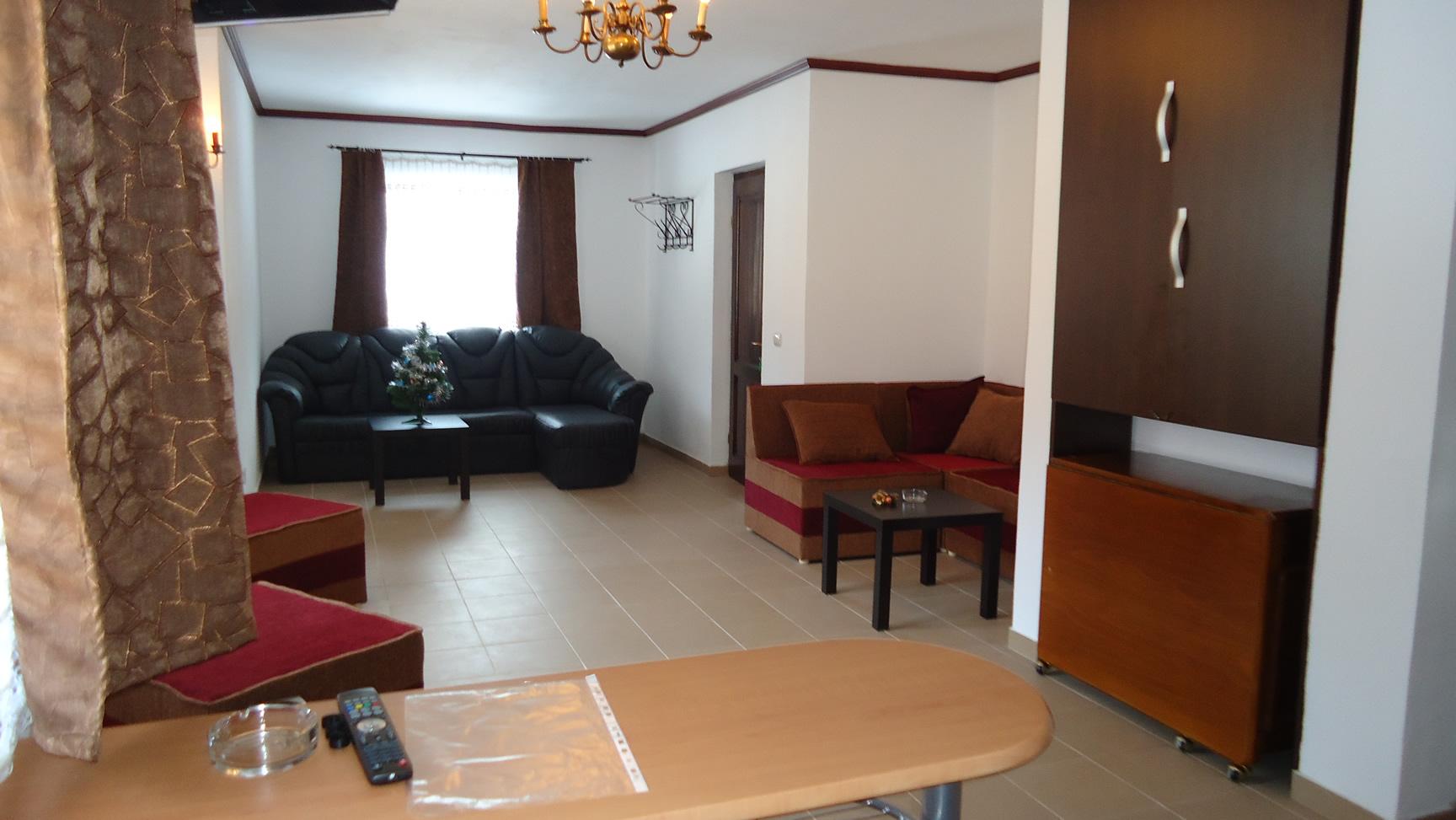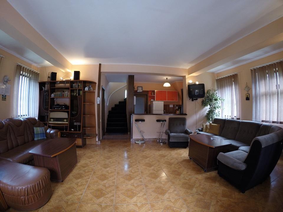 VILA SABINA este conceputa ca o vila familiala, deci ea se inchiriaza per total indiferent daca vine o persoana sau mai multe. La etajul 1 avem 2 dormitoare fiecare cu pat dublu, cu tv cablu si o baie de servici pe palier, iar la parter un living dotat cu doua canapele din care una este extensibila, tv cablu , baie cu dus si bucatarie dotata pentru SELF-CATERING. Exista centrala proprie pe gaz