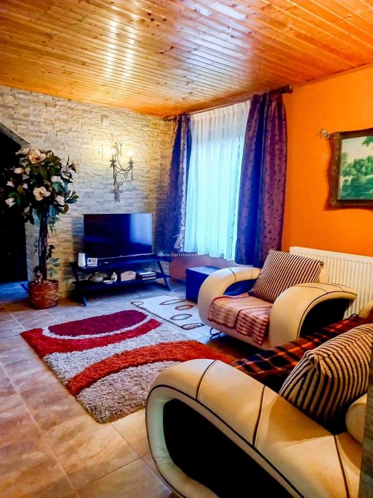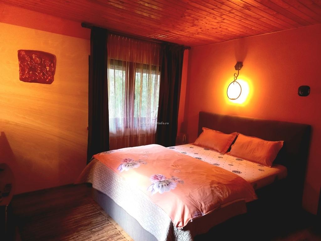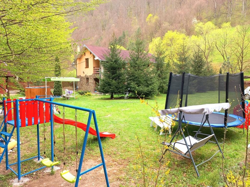 Situata pe Valea Iadului, la poalele stancilor, inconjurata de padure,casa poate fi rezervata integral in weekend, in cursul saptamanii sau pe perioade mai lungi chiar si partial; casa dispune de 4 camere cu pat dublu, 2 bai, 1 living, terase , bucatarie utilata , posibilitate de cazare pana la 12 persoane, curte generoasa, loc de joaca pt copii, foisor pt gratar(electric si pe carbuni), ciubrar tip jakkuzi, bicilclete gratuit, masa de pingpong, jucarii pt copii, toate intr-un peisaj de vis