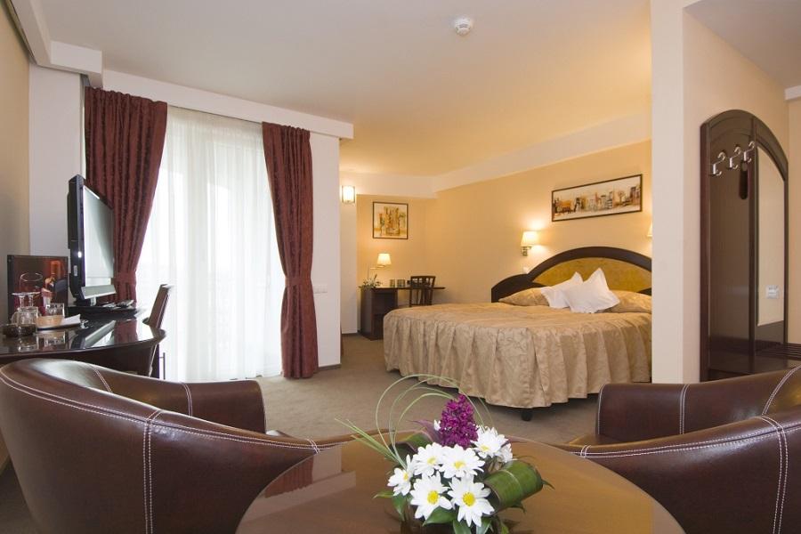 Camerele business dispun suplimentar de o suprafata mai mare si: - Wide Screen LCD TV cu sistem infotainment si VOD ( video on demand ) ;- cada cu hidromasaj ;- birou de lucru dotat cu fax-copiator
