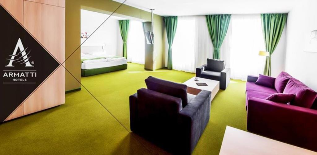 Hotelul Armatti este amplasat în spaţiul modificat al unei clădiri ultracentrale pentru care am menţinut forma şi am redefinit funcţionalitatea. Am îmbunătăţit structura pentru a crea spaţii largi şi luminoase şi am restaurat faţada păstrând linia arhitecturală a c lădirilor din vecinătate. Interiorul este conturat de linii şi forme bine definite ce asigură un parcurs organic în interiorul hotelului. Am modificat curtea interioară pentru a putea cuprinde până la 15 locuri de parcare cu acces rapid din zona de recepţi e şi din holul hotelului. Spaţiile destinate parcării sunt supravegheate video, intimitatea oferită de curtea hotelului fiind întregită de siguranţă.
