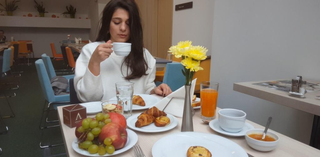Micul dejun este pregătit şi servit în concordanţă cu cele mai înalte standarde internaţionale de calitate şi igienă. Micul dejun (bufet suedez) se serveşte în Salonul de Mic Dejun aflat la etajul al treilea al hotelului, între orele 07:00 – 10:00 a.m., în timpul săptămânii şi 08:00 a.m. – 11.00 a.m., sâmbăta şi duminica
