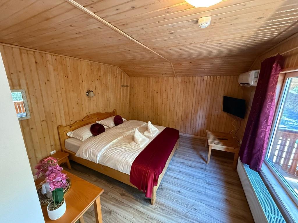 Dispunem de parcare in fata locatiei ,terasa exterioara unde se poate fuma ,in interior fumatul este interzis, pensiunea este de lemn ,autorizata Isu.