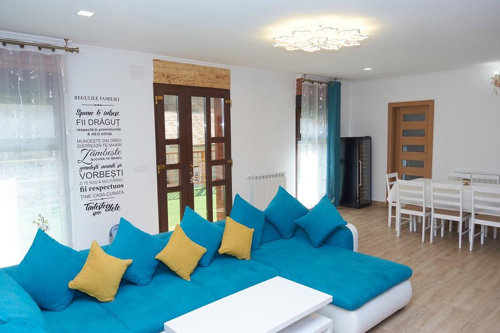 Casa Borugă pune la dispoziția oaspeților 5 camere, 2 băi, o sală de fitness, bucătărie, living cu canapea extensibilă, TV în fiecare cameră, WI-FI gratuit, Netflix, 3 locuri de parcare gratuite , toată casa are o suprafață de 200 mp. Terasă și grătar acoperit cu sobă, cuptor și afumătoare se întind pe 120 mp. Capacitatea de cazare este de maxim 10 persoane şi casa se închiriază integral pentru minim 2 nopţi.