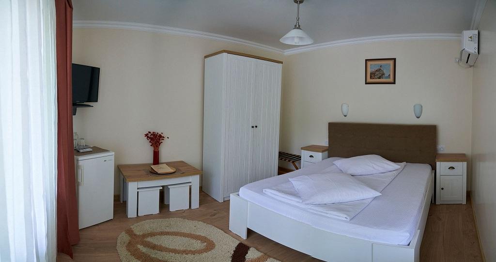 Iata pe scurt oferta noastra: camere cu pat dublu, frigider, TV, bucatarie amenajata, gratare, balansoare, loc de joaca ingradit pentru copii, piscina in aer liber si parcare pazita.