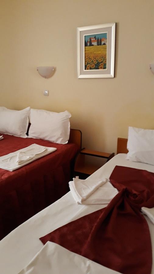 Camere  duble(cu pat matrimonial), triple(un pat dublu si un pat de o persoana), sau cu 4 locuri(2 paturi duble). Toate camerele au bai proprii cu dus, televizoare cu diagonala mare, frigider cu congelator, aer conditionat, internet wireless, pardoseli de gresie, balcon.