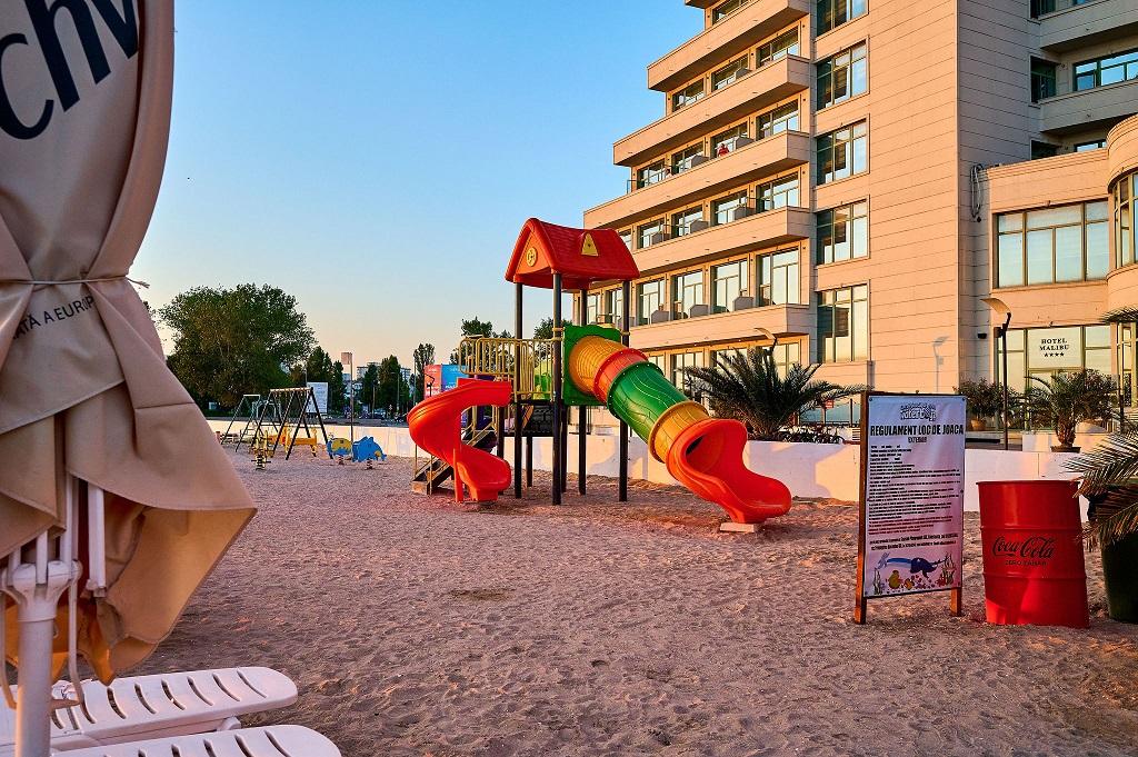 Hotelul Malibu ofera si piscina exterioara, dar dispune si de un loc de joaca pentru copii, echipat cu tobogane si leagane.