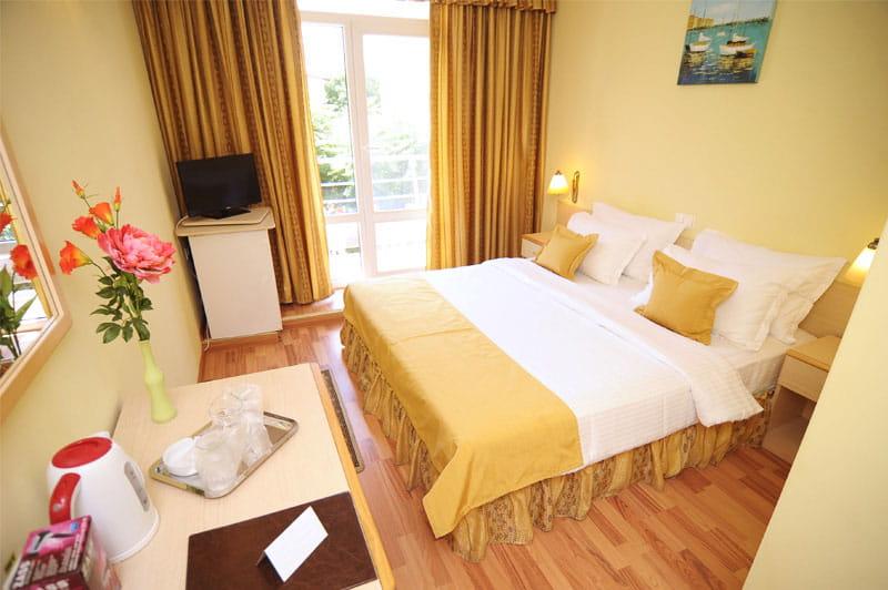 Toate camerele dispun de pat matrimonial, aer conditionat, televizor LCD, frigider, seif, baie cu dus, uscator de par, balcon, plasa de tantari.