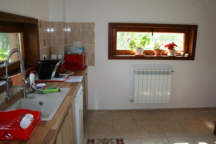 În casă: Veți găsi un living spațios, biblioteca, un loc de servit masa cu masa de 8 locuri și o bucătărie complet utilată cu electrocasnice noi (prajitor, cuptor microunde, plita de gatit, cafetiera) si  dotari pentru servirea mesei..