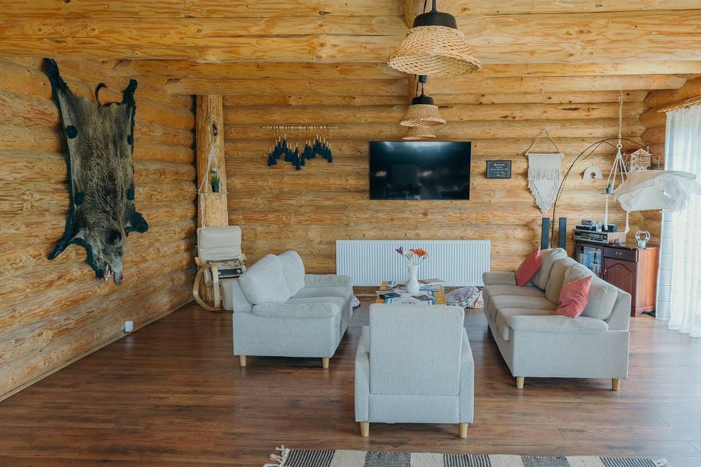 Dormitoarele sunt dotate cu pat matrimonial, mobilier rustic, tv, wi-fi existând posibilitatea introducerii in fiecare camera a câte un pat pliabil ajungând la o capacitate de 12 persoane.