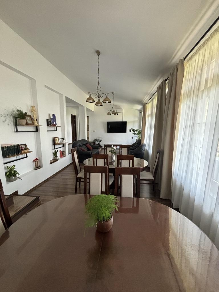 Bucură-te de confort și de mult loc în această locuință spațioasă. Pensiunea are 6 camere fiecare cu baie proprie, 16 locuri de cazare, living spatios, terasa acoperita generoasa si bucatarie complet echipata, parcare , curte 2000mp, etc