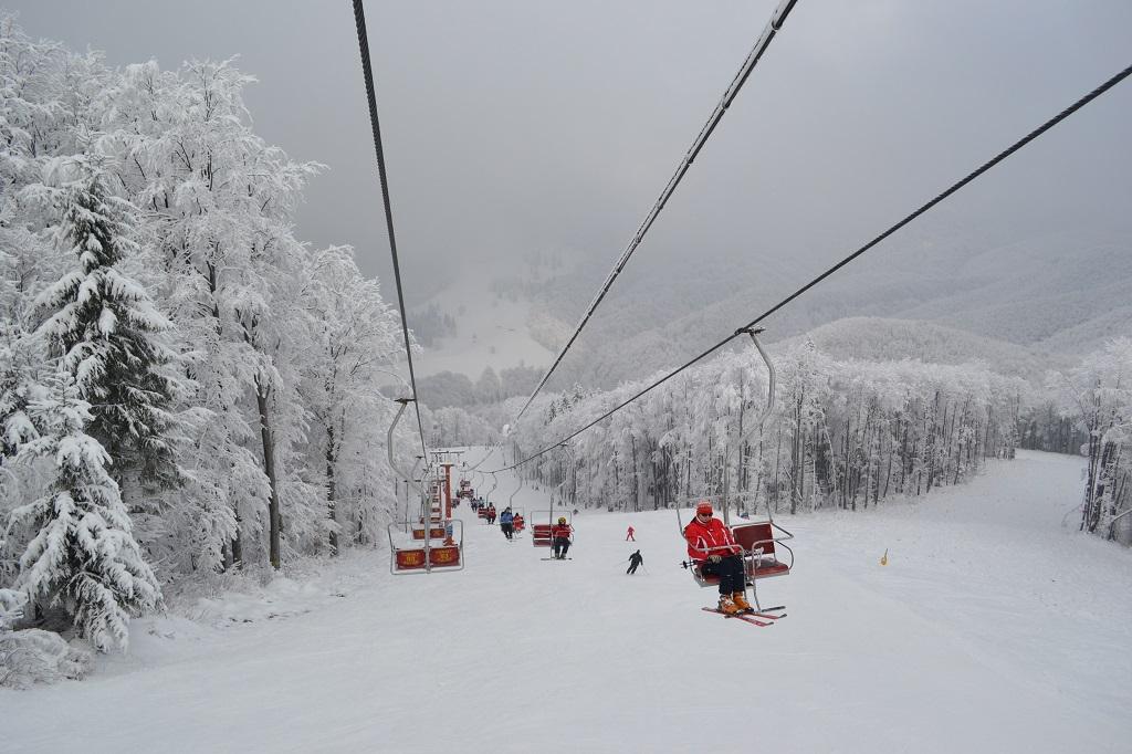 Staţia de plecare a telescaunului este amplasată la doar 50 m de terasa restaurantului.