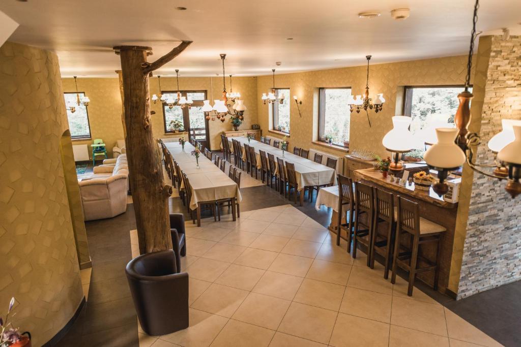 Unitatea dispune de 11 camere ( duble și triple) prevăzute fiecare cu baie privată (cu duș), birou, TV cu ecran plat, unele au acces direct la terasă, iar în întreaga proprietate este disponibil Wi Fi gratuit. Printre dotările unității se regăsesc de asemenea : bucătăria complet utilata accesibila turiștilor,  o zonă de socializare cu șemineu, un foișor (cu grătare si ceaun), terasă, loc de joacă pentru copii ( la interior si la exterior), balansoar și parcare privată gratuită.