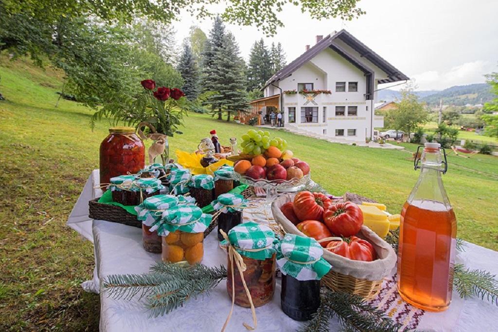 La umbra teiului din curte sau in salon, oaspetii fac buna cunostinta cu savoarea preparatelor culinare bucovinene.
