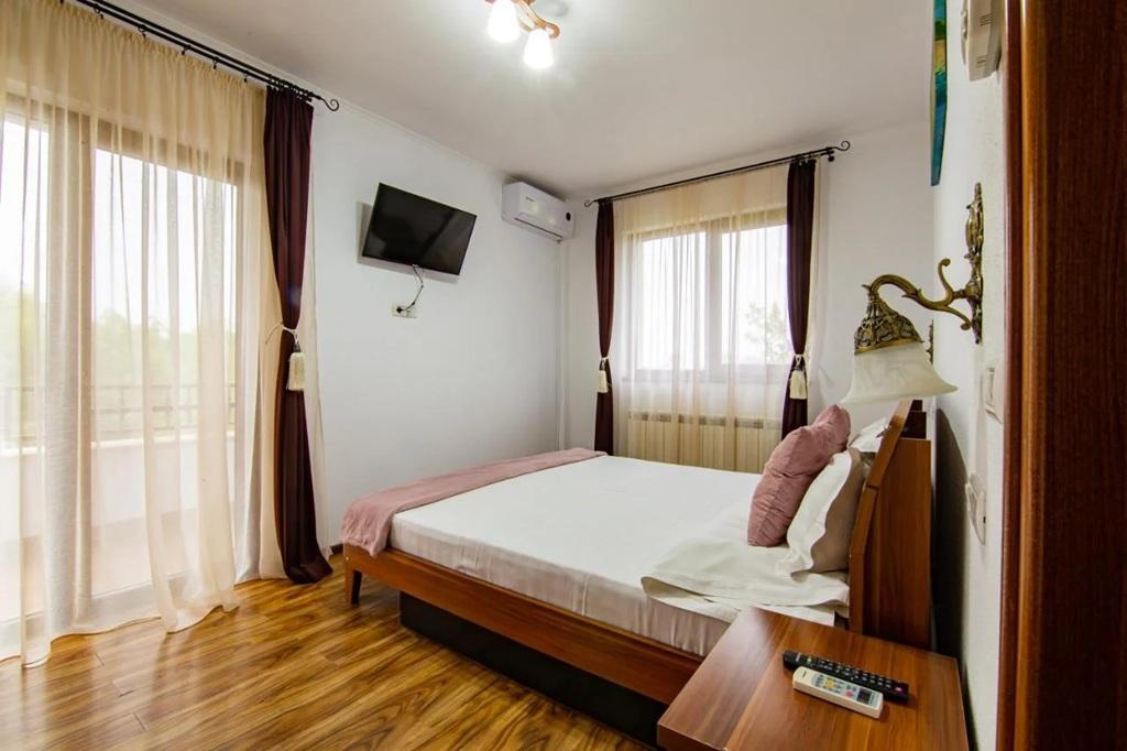 Una dintre atractiile principale este piscina exterioara, perfecta pentru zilele calduroase de vara. Este curata, moderna si amplasata intr-un spatiu linistit, inconjurat de vegetatie si zone de relaxare. In plus, turistii beneficiaza de bar cu terasa, masa de biliard, loc de joaca pentru copii, sala de conferinte si zone verzi pentru odihna. Toate acestea transforma complexul intr-o destinatie potrivita atat pentru adulti, cat si pentru familii cu copii sau grupuri corporate.