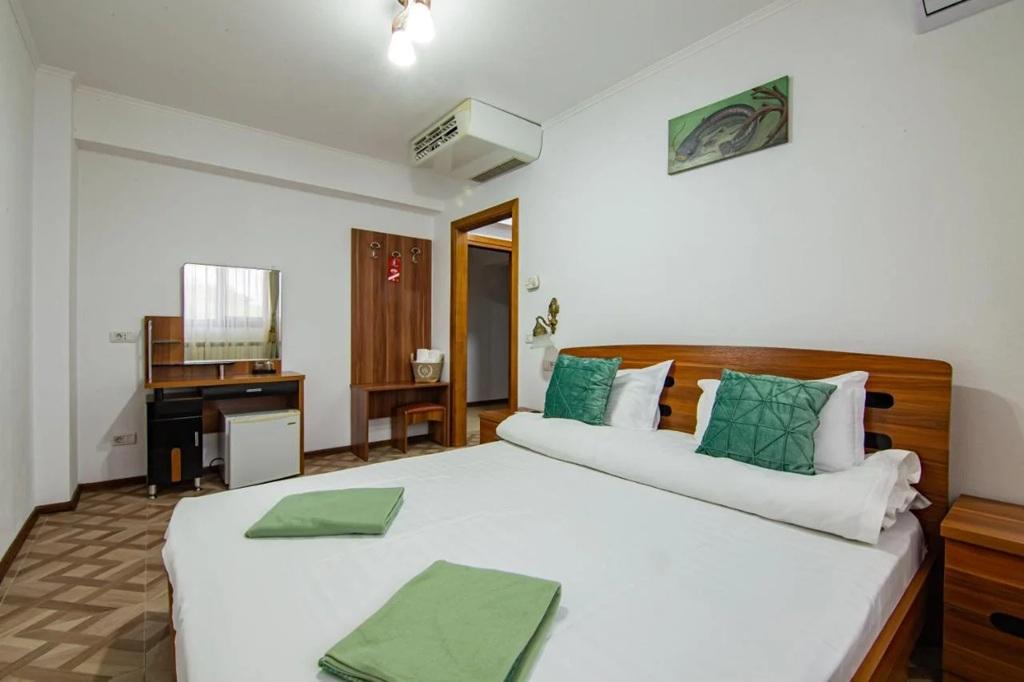 Complexul este compus din doua pensiuni moderne – Pestisorul si Pelicanul – care pun la dispozitie camere spatioase, curate si complet echipate pentru un sejur confortabil. Fiecare camera este dotata cu TV, Wi-Fi gratuit, aer conditionat si baie proprie. Interiorul este elegant, cu accente marine si decor inspirat din specificul Deltei Dunarii. Capacitatea mare de cazare permite atat sejururi individuale, cat si grupuri organizate, team building-uri sau excursii scolare. Accesul se face cu masina direct pana la locatie, iar parcarea privata este gratuita.