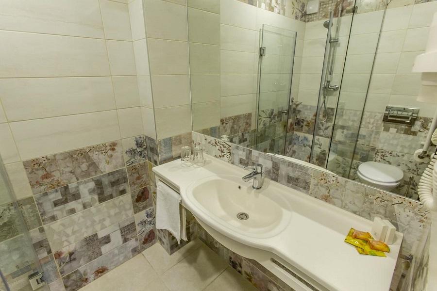 Cazare: Alegeti camera preferata, dotarile asigurand toate tipurile de confort: Wifi, TV, birou, minifrigider, baie cu cabina dus, uscator par.